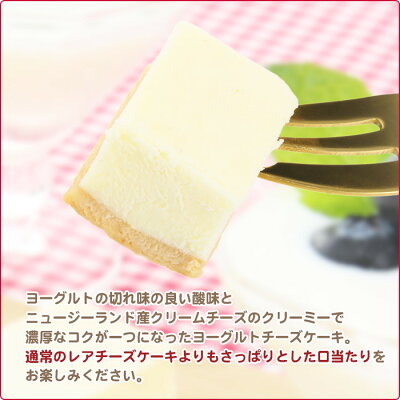 爽やかなヨーグルトとコクのクリームチーズのハーモニー ヨーグルトの切れ味の良い酸味とニュージーランド産クリームチーズのクリーミーで濃厚なコクが一つになったヨーグルトチーズケーキ。