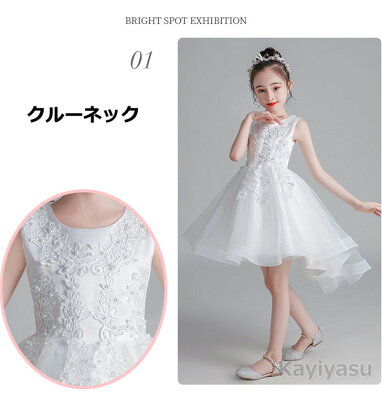 )カラー:ホワイト、ピンク、シャンパン色 上質で高級感溢れるすごくかわいい女の子チュールフォーマルドレスが新登場。