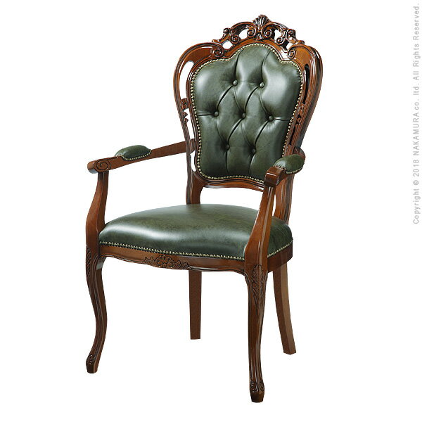 イタリア製 革張りダイニングチェア ヨーロピアン アンティーク調 クラシック チェア 椅子 いす イス チェア 木製 椅子 ひじ掛け ひじ置き ヨーロッパ バロック レトロ 高級感 インテリア 食卓椅子 洋館 レストラン 西洋 輸入家具 かっこいい モダン おしゃれ お洒落