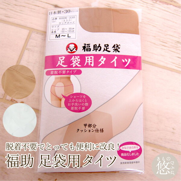 ・「パンティ部レス」タイプなので、ムレにくく、タイツの上からショーツを穿けば、お手洗い時の着脱も便利! ・指先が足袋型なので、足袋にぴったり! ・鼻緒や正座の痛みを軽減できる甲部クッション ・チラリと見えても素肌に見えるカラー&デニールを採用 ◆素材 ナイロン・ポリウレタン 日本製、厚さ30デニール、静電気防止加工 ◆サイズ ・M〜Lサイズ :ヒップ85〜98cm 身長150〜165cm ・L〜LLサイズ:ヒップ90〜103cm 身長155〜170cm ◆カラー クリアヌード(肌色) ホワイト ◆メール便 メール便1通につき、2足まで可 ◆お取り寄せ表示について メーカーお取り寄せ時に、メーカー商品売切れの場合も稀にございます。