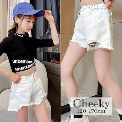 ホワイトデニムショートパンツ No.210518-02 韓国子供服 韓国ファッション キッズ ダメージデニム 大人っぽい 白 ショートパンツ 女の子 かっこいい 可愛い ボトムス オシャレ 春 秋 夏 人気 子供服 Cheeky ちーきー 新作
