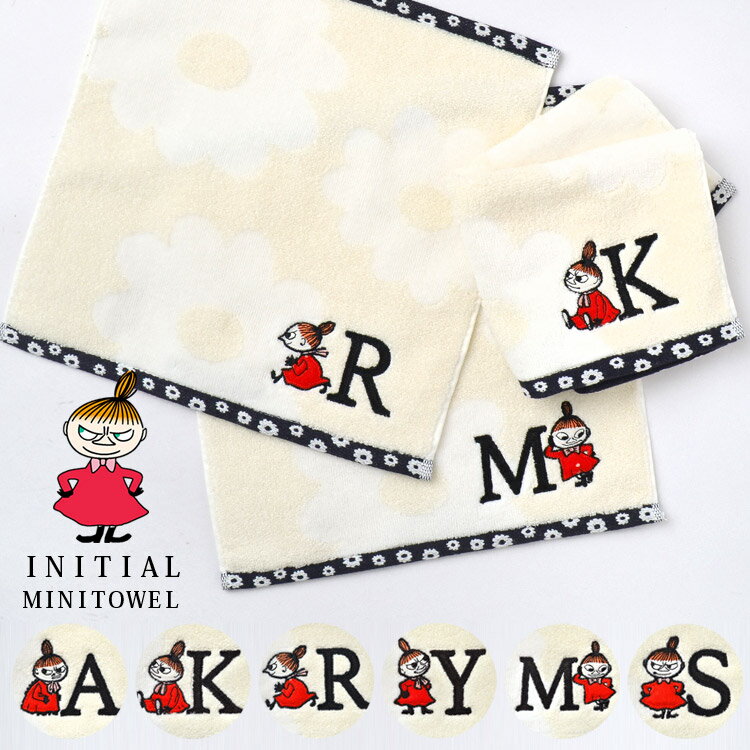 ハンドタオル イニシャル かわいい タオルハンカチ ムーミン ミイ ミィ リトルミイ MOOMIN ミニタオル ハンカチ おしゃれ シンプル 刺繍 レディース ムーミングッズ 北欧 花柄 タオル 綿 女性 子供 キャラクター プレゼント お返し 通勤 A K M R S Y 母の日 花以外 実用的