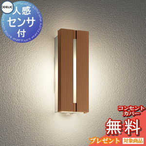 エクステリア 屋外 照明 ライト パナソニック(Panasonic) ポーチライト LGWC80411 縦長デザイン 電球色 プラチナメタリック ミディアムブラウン木調飾り 人感センサLED ブラケットライト ポーチライト 玄関灯 門柱灯